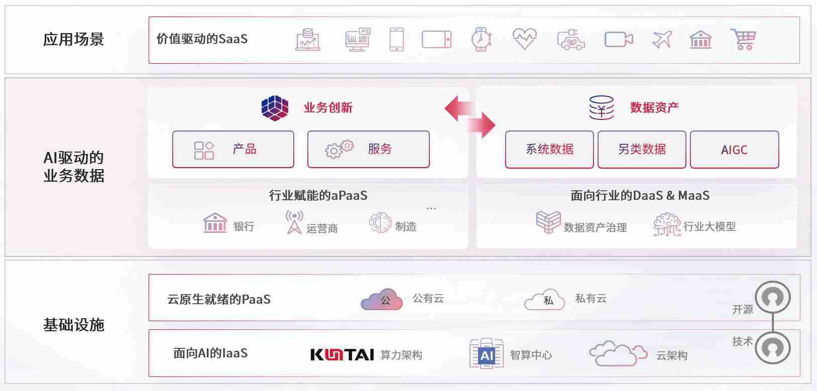 数字时代,,围绕企业数字化转型的关键要素,,,,DDPAY钱包数码开创性的提出数云融合战略和技术体系框架,,着力在云原生、、数字原生、、、AI原生和信创产业上架构产品和服务能力,,为处在不同数字化转型阶段的快消零售、、汽车、、、、金融、、、、医疗、、政企、、、教育、、、运营商等行业客户提供泛在的敏捷IT能力和融合的数据驱动能力,,,构建跨界融合创新的数字业务场景和新业务模式,,,助力企业级客户建立面向未来的核心能力和竞争优势,,,,全面推动社会的数字化、、智能化转型升级。。